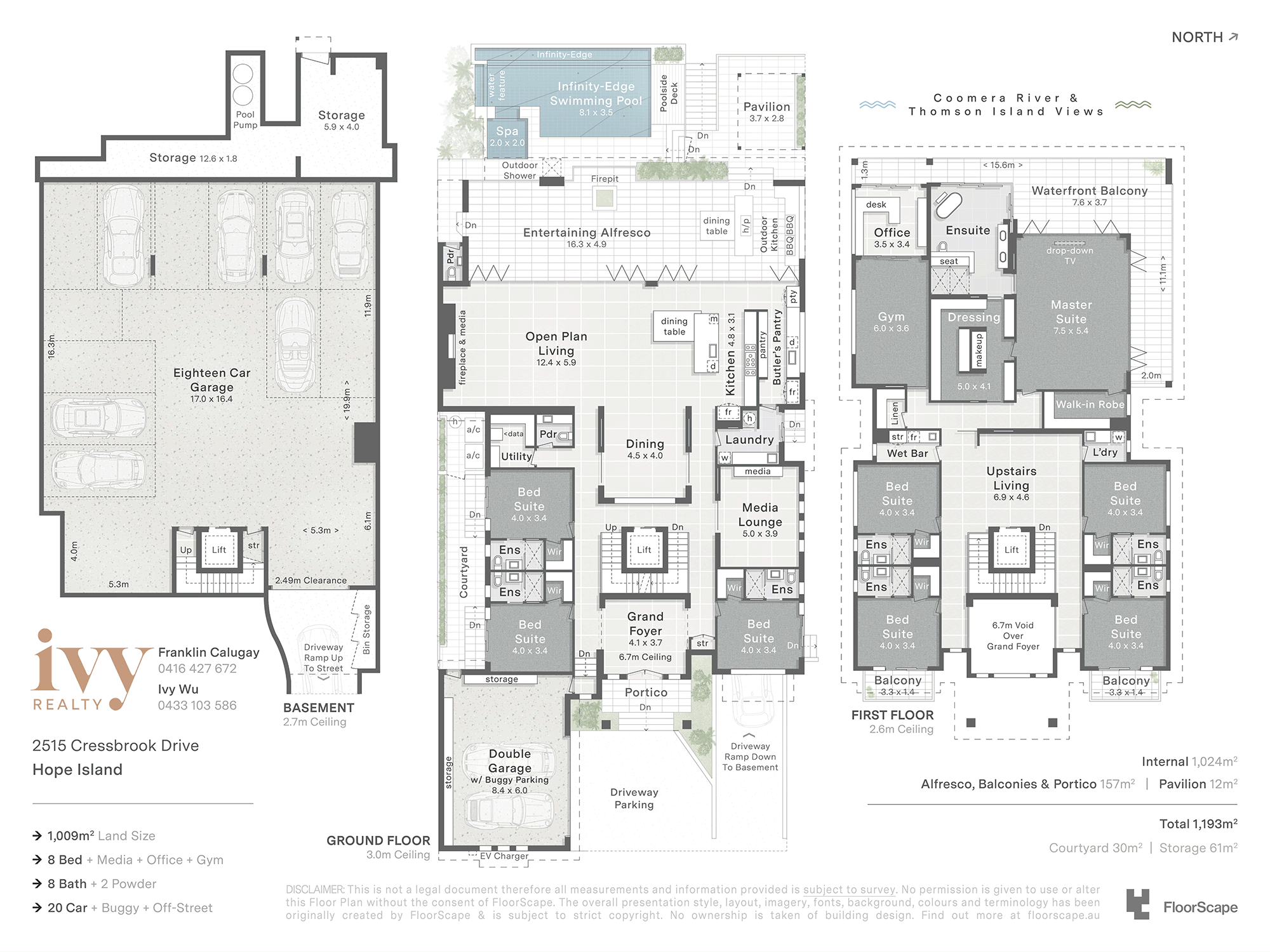 Car collectors, tradesmen and large families are well catered for too. A double garage/workshop featuring an imported American storage system, 3.3 tonne car hoist and 3-phase EV charger will impress, however it's the basement garage that elevates this property into a league of its own. One of the largest on the Gold Coast, it offers secure accommodation for to 20 vehicles with a rare 2.7m clearance – perfect for supercars, luxury SUVs, or a treasure collection. Further bolstered by advanced home automation, a Yamaha Music Cast system and a coveted Hope Island location, this property truly exceeds all expectations. Secure the dream residence and lifestyle you've been longing for. Arrange an inspection today!