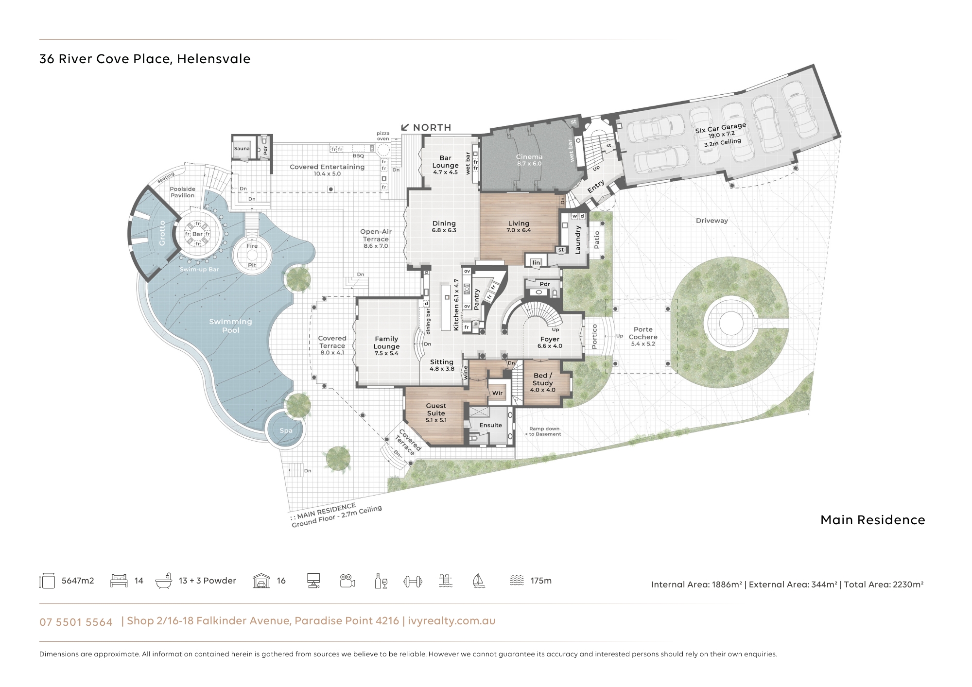 - Grand ballroom beset by a soaring 8m void, opens to a waterfront terrace