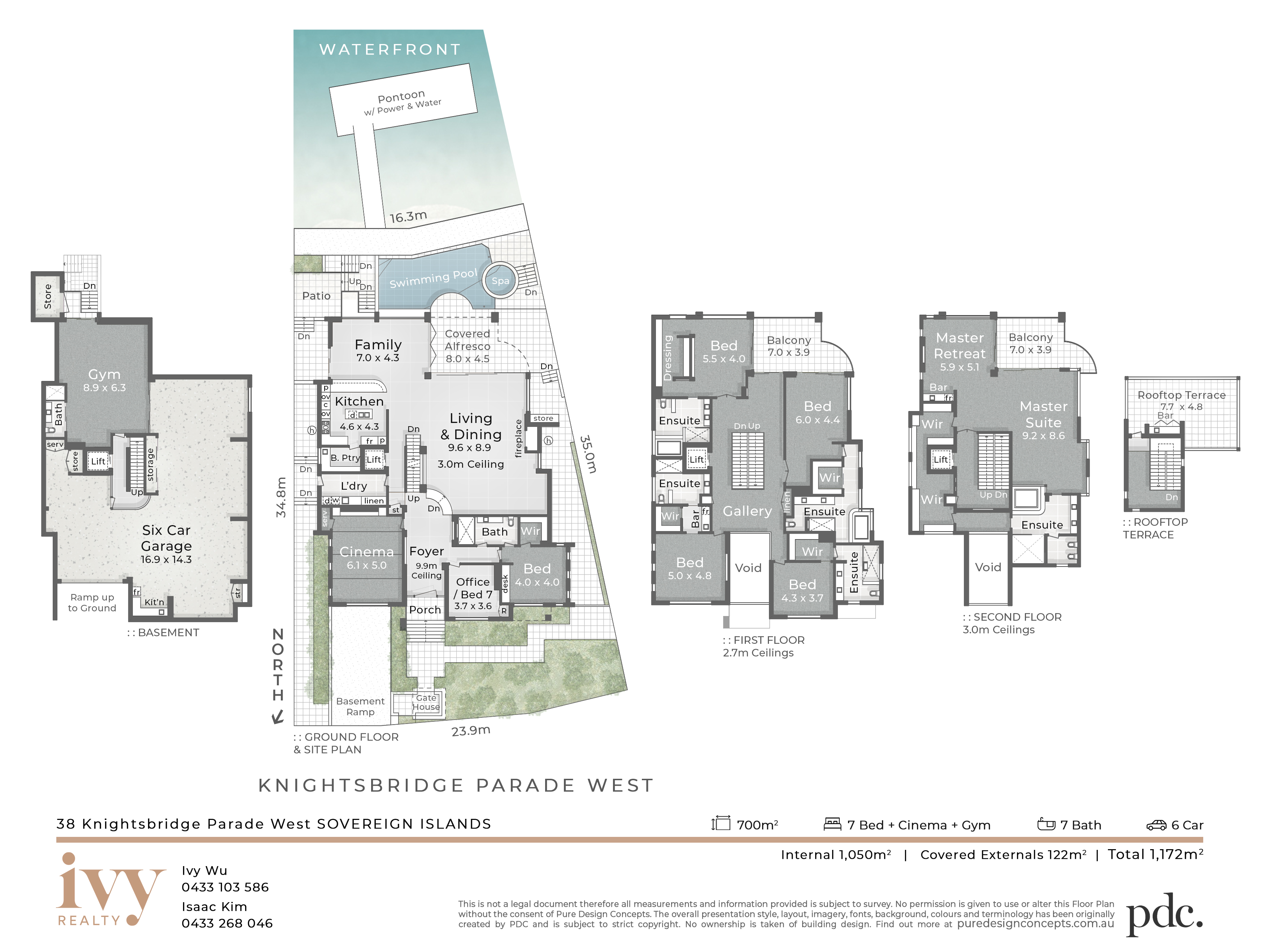 from this elevated entertaining area that also features a lockable kitchenette. Alternatively, gather on the ground floor patio and enjoy views of your pool, spa and surrounding waterways. Other superior features of "Catalina" include a six car basement garage, home gym with bathroom and an executive office with custom cabinetry.