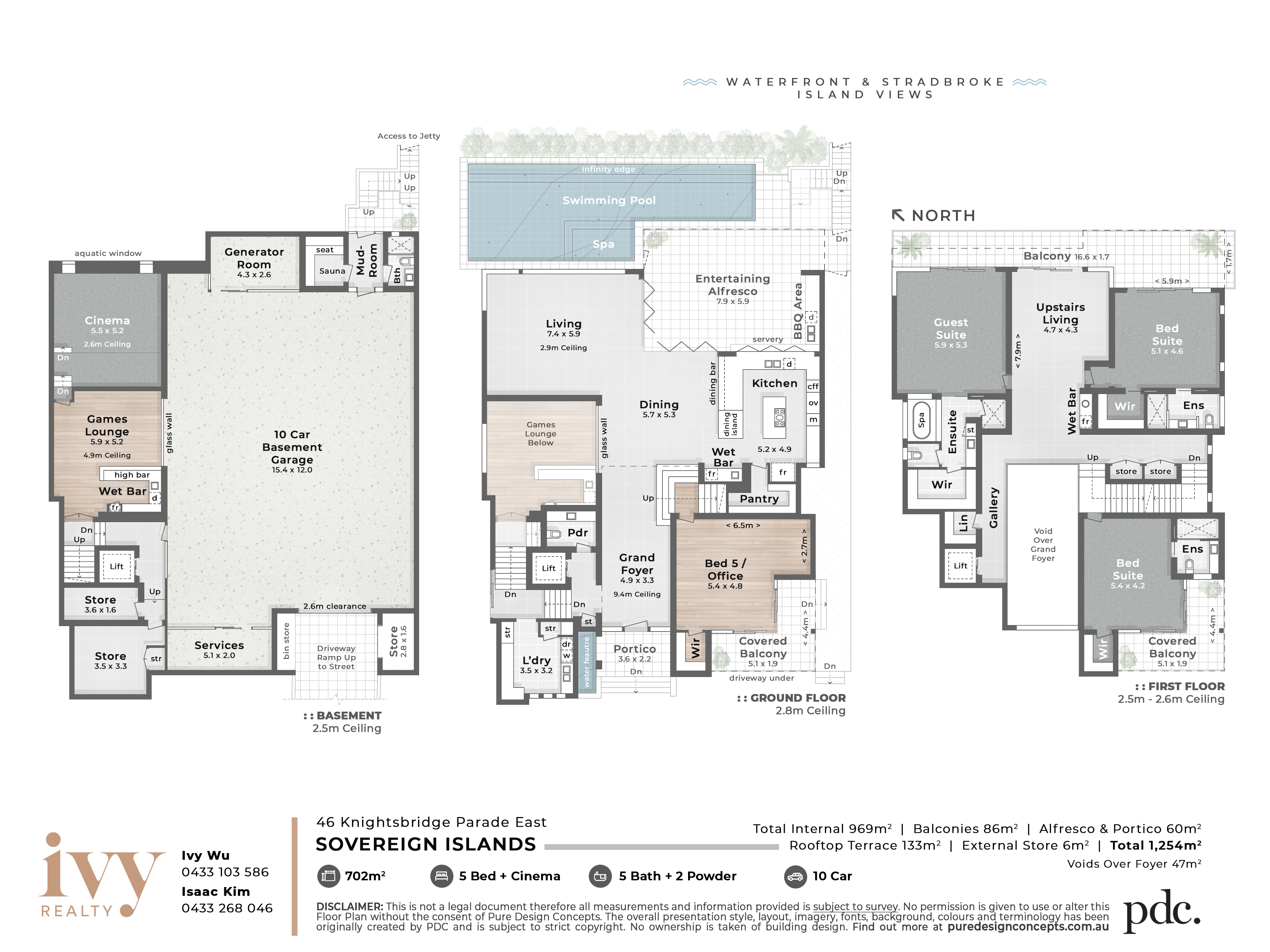 Commanding instant admiration and awe, this multi-level marvel captivates with its uninterrupted Broadwater position and majestic elegance. Sprawling across five levels on a north-east facing 702m2 block, it's a statement of uncompromising grandeur. Enhanced by opulent finishes, an internal lift and soaring ceiling heights across a staggering 1254m2 floorplan, this includes a dramatic 9.4m void that crowns the foyer.